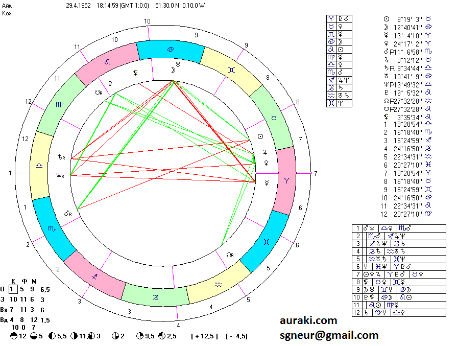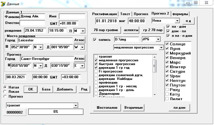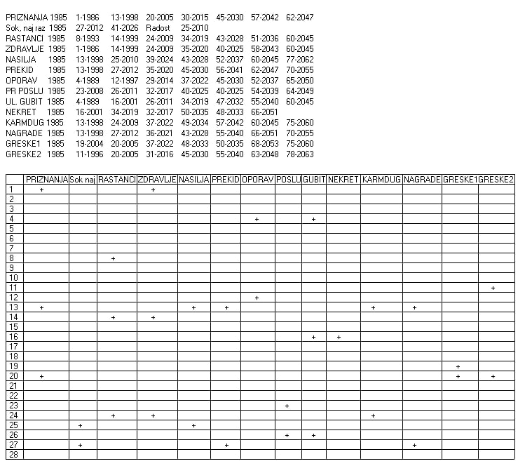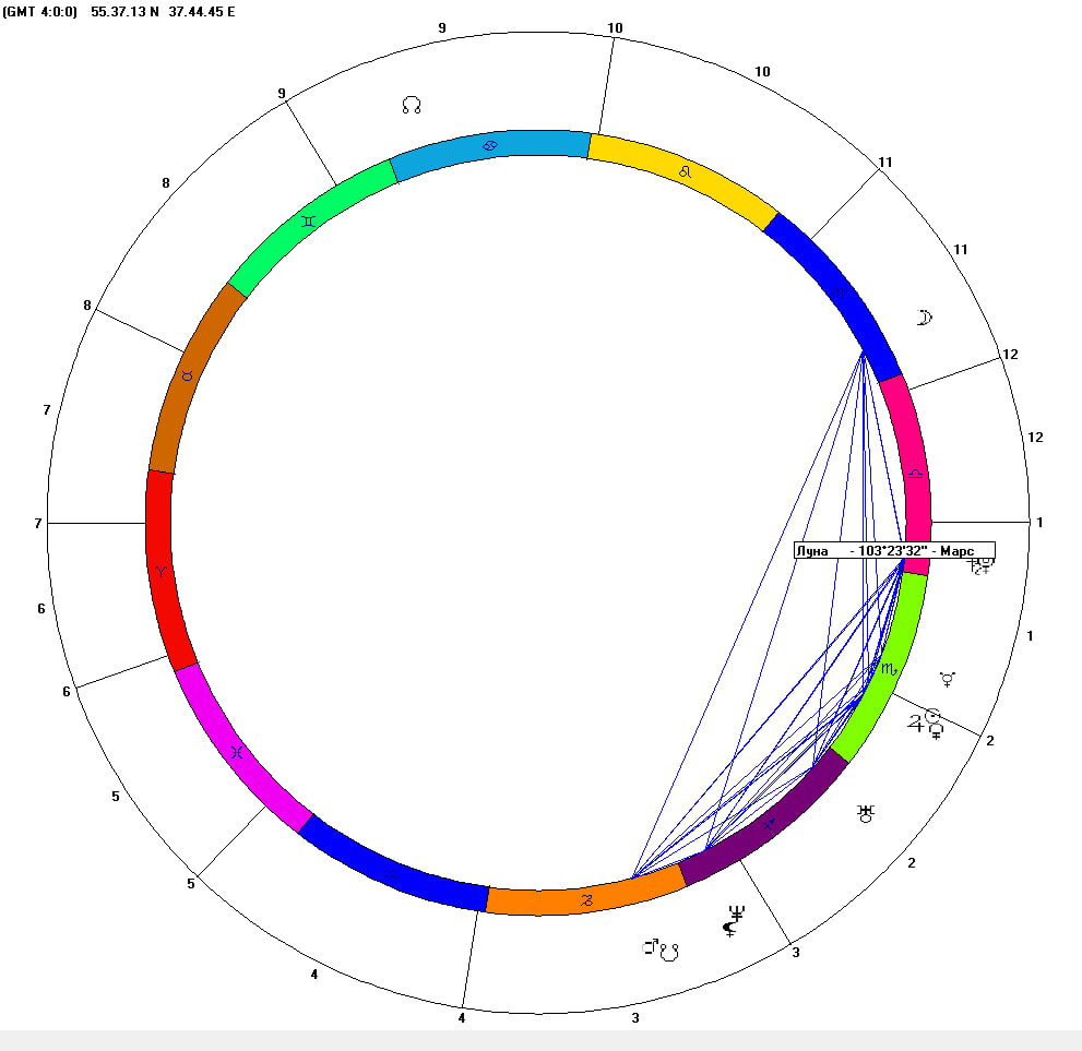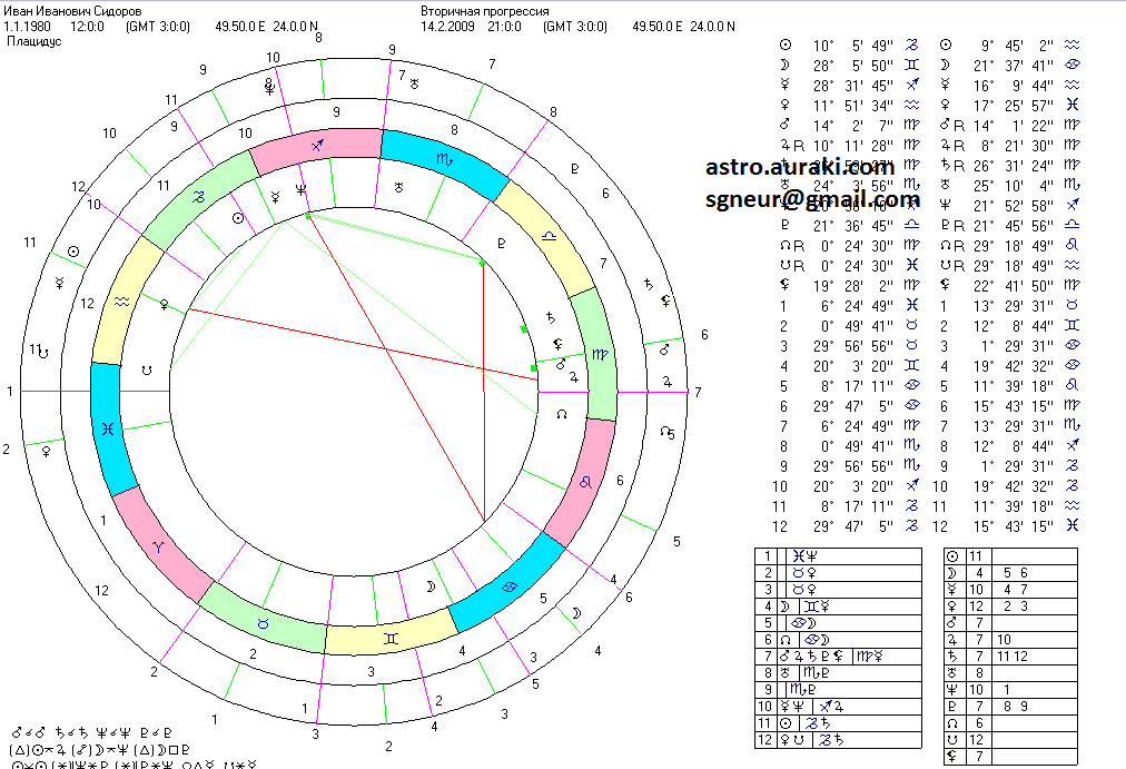 summary KTA for a specific date is shown in the diagram in the image. Slow progression represents the ongoing program of our destiny. Its directions determine events that change our lives or our status. The effect of a progressive aspect ends, but we do not return to our original state. Events determined by progressive aspects leave a lasting impact. Three aspects are required for an event to materialize (read here about planetary aspects in forecasts).