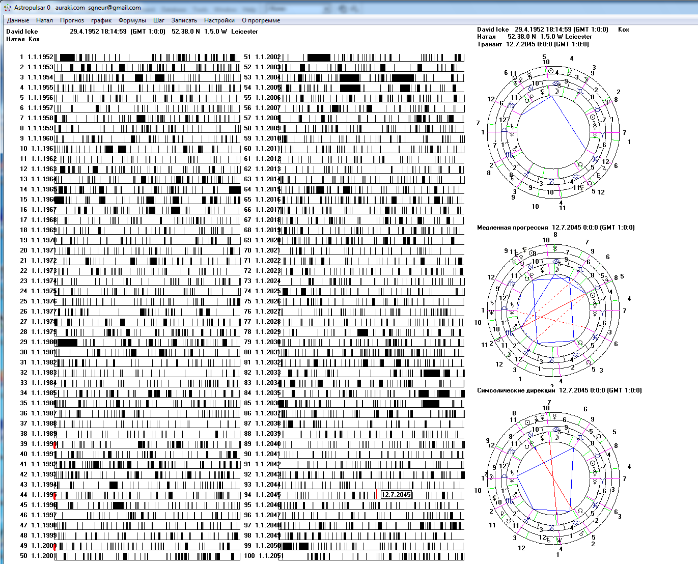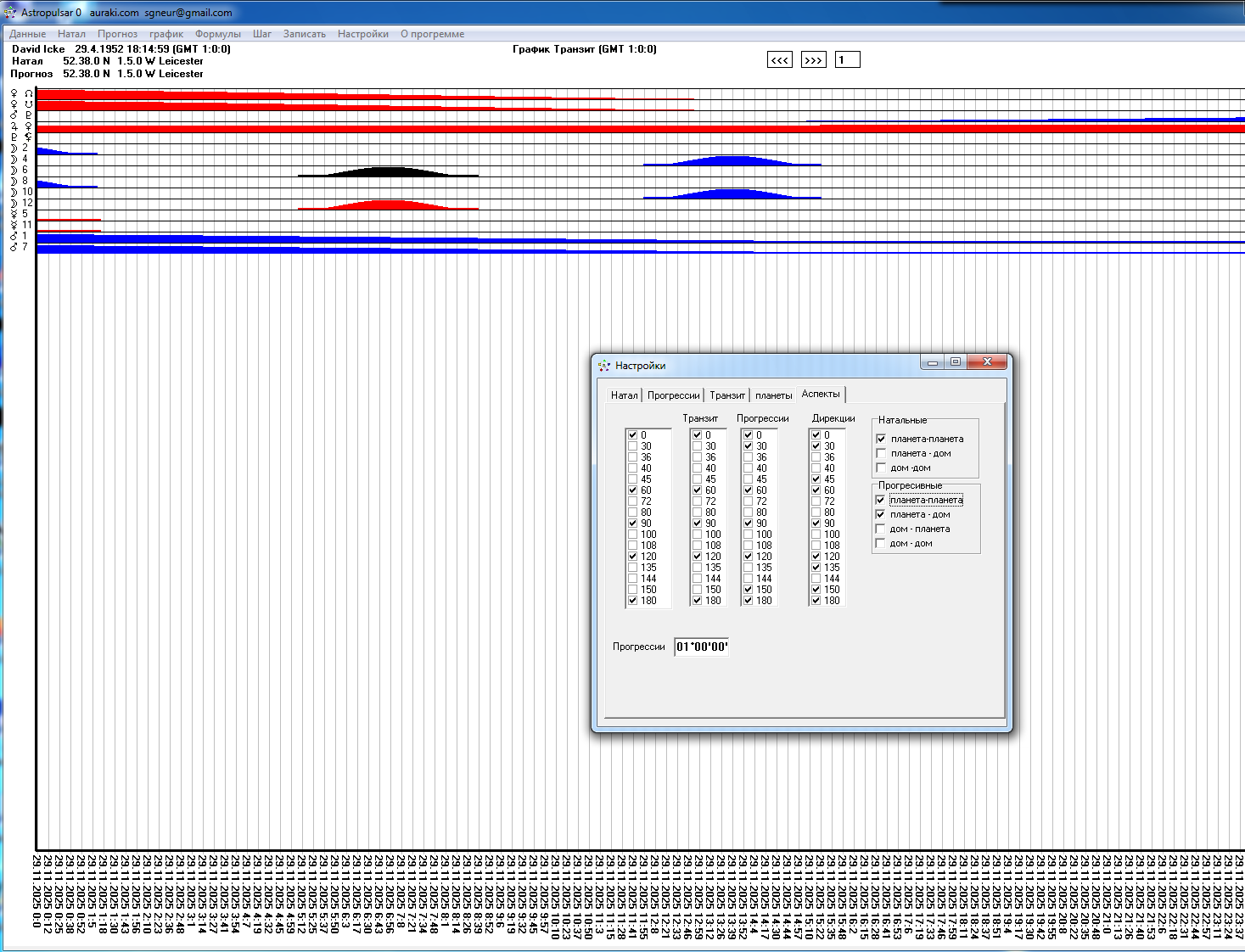 Возможен автоматический анализ периодов где события совпадают с аспектами в транзите планета дом