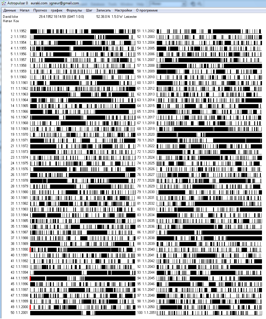 Поверх аспектов красным рисуются даты событий с списка
